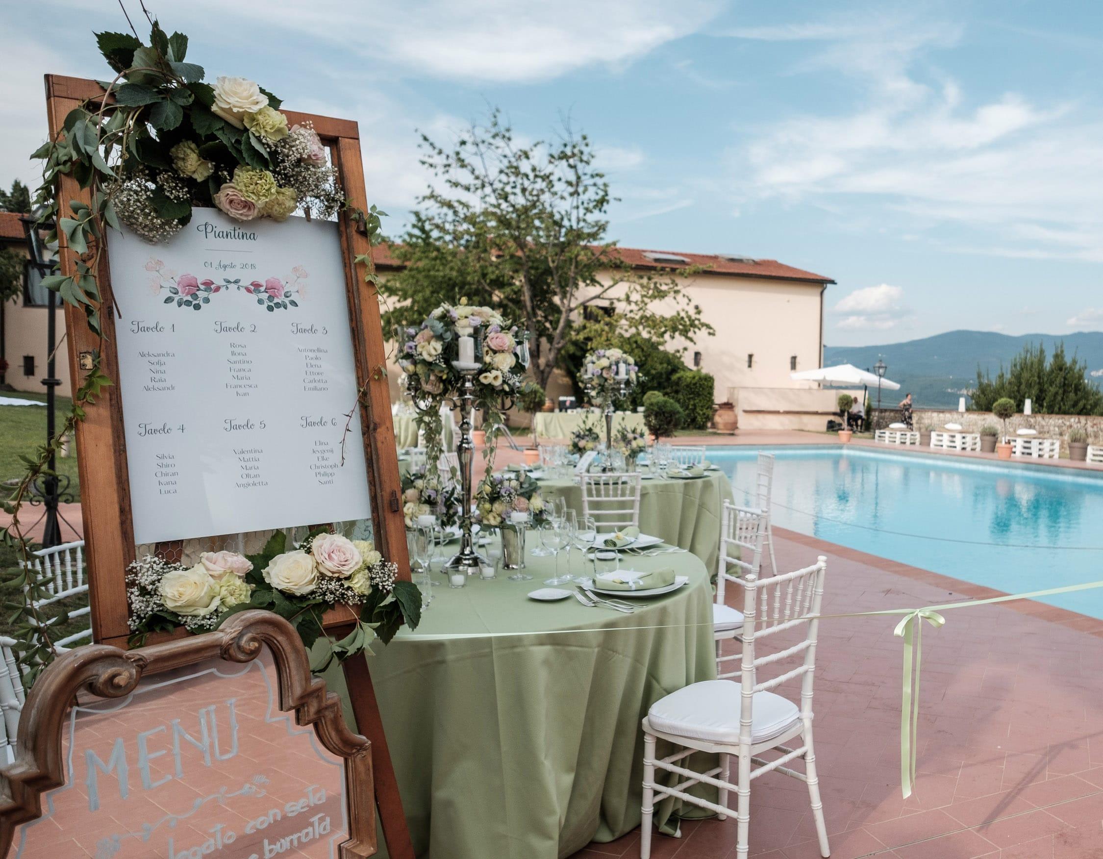 Tra le wedding location più romantiche delle colline Toscane, a Villa Pagnana organizziamo ricevimenti di matrimonio in due grandi sale o intorno alla splendida Piscina panoramica, che offre un’eccezionale vista sulle vigne del Chianti.
