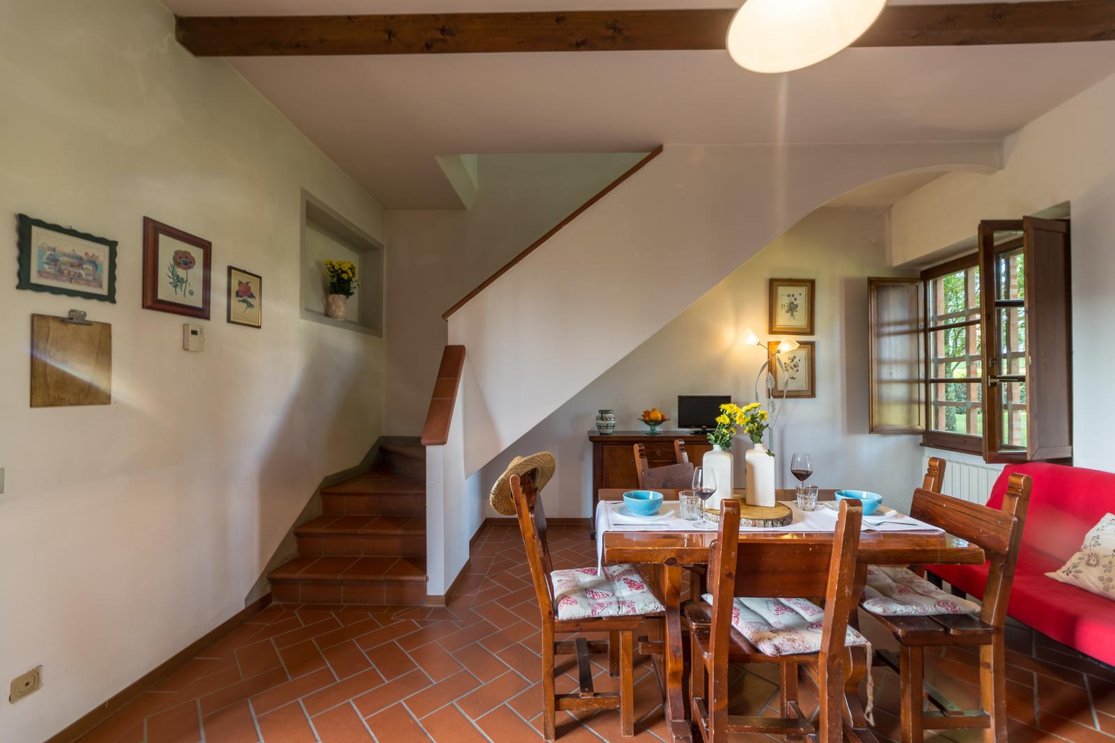 L’appartamento “Pino” fa parte del Loggiato, un complesso di appartamenti in un bellissimo casolare toscano. Questi locali erano un tempo adibiti a laboratori artigiani necessari per eseguire riparazioni e quant'altro fosse richiesto per il lavoro in fattoria. Oggi sono stati ristrutturati e dal restauro sono stati ricavati sei appartamenti per l’Agriturismo.