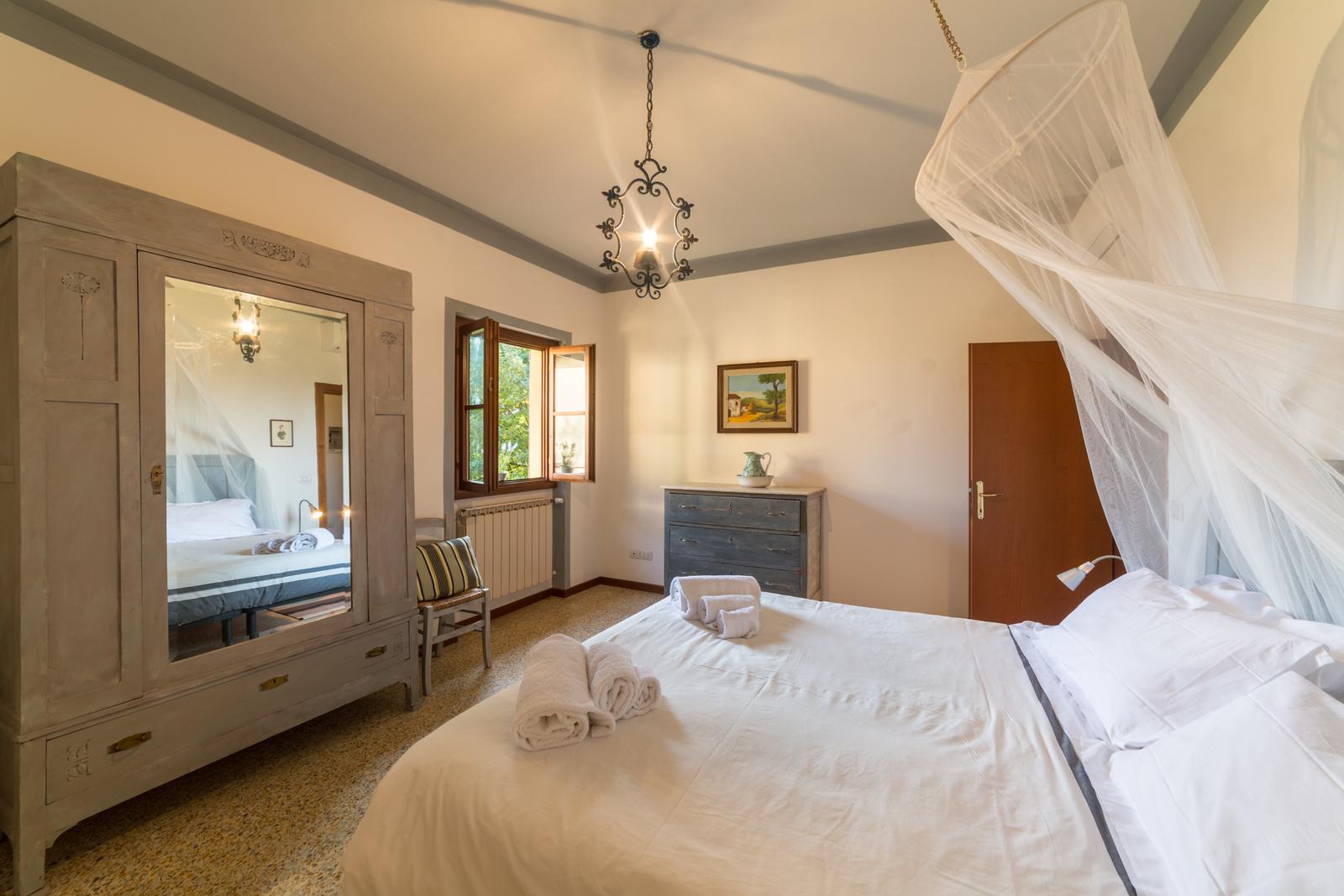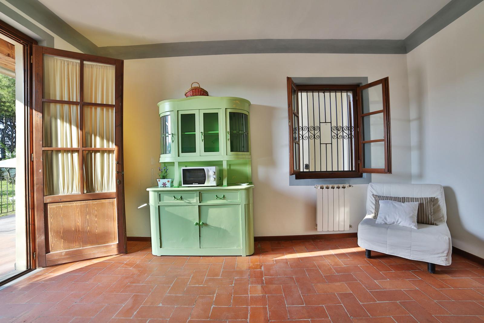 Il Pioppo è un vivace appartamento con un mix di elementi tradizionali e mobili restaurati sui toni del verde. La camera ha una splendida vista sulle vigne e una vecchia porta in legno massiccio come testata del letto matrimoniale, convertibile in 2 letti singoli su richiesta.